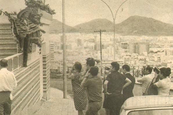Las Palmas ta ilgi odağı olan Zeki Müren şehri gezen turistlere poz veriyor