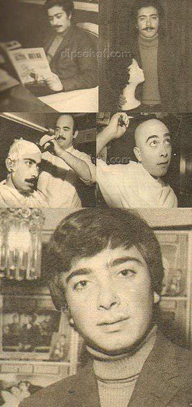 Biraz sonra filmdeki Keloğlan karakteri için berbere gidecek olan Rüştü Asyalı, ilk karede Keloğlan masalları okuyarak beklemede.. Yandaki resimde ise film çekimleri boyunca normal hayatta kullanmak için satın aldığı peruğu ile...
