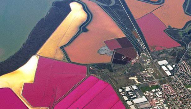 ABD'nin San Francisco kentinde bulunan bu yoğun tuzlu göletler güçlü yosun oluşumu nedeniyle kırmızıya dönüşüyor. Bu da muhteşem bir doğa olayına neden oluyor. Avustralya’daki Hiller Gölü için de benzer durum söz konusudur.