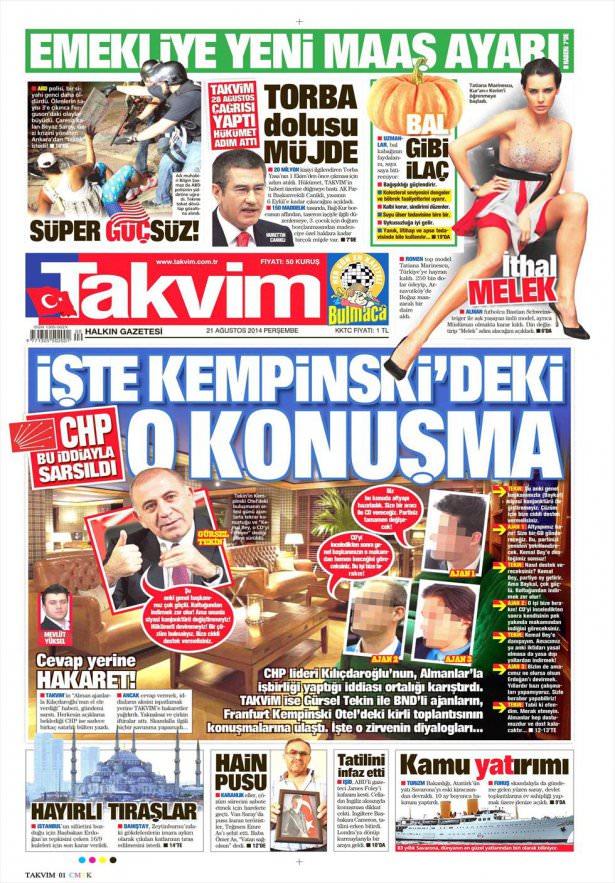 21 Ağustos 2014 gazete manşetleri