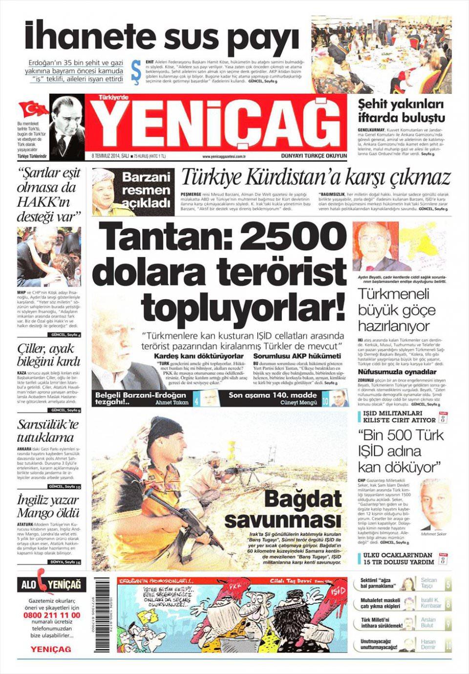 26 Ağustos 2014 gazete manşetleri