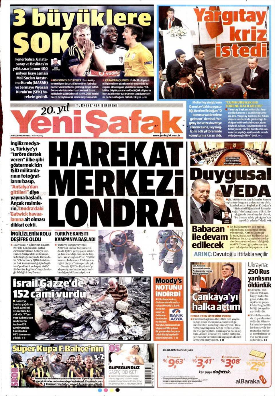 26 Ağustos 2014 gazete manşetleri