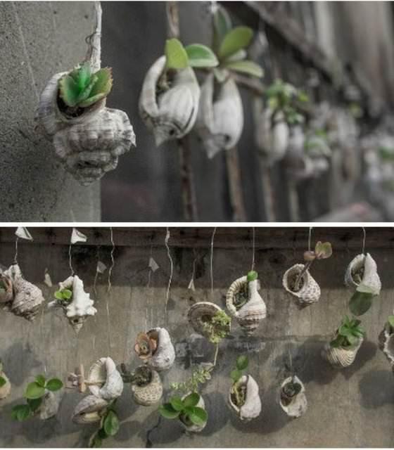 Deniz kabuklarına tohum ekerek güzel bir dekorasyona kavuşmak...