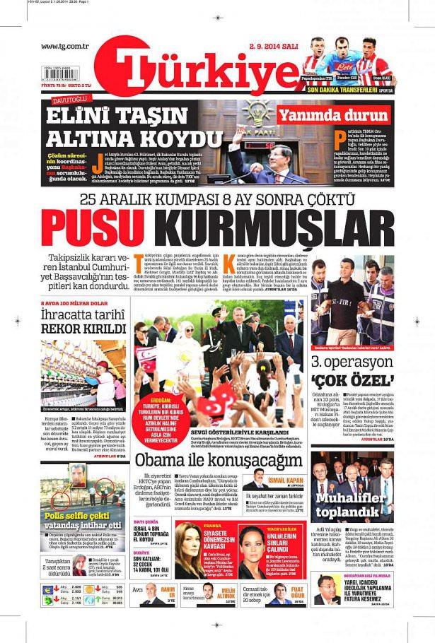 2 Eylül 2014 gazete manşetleri