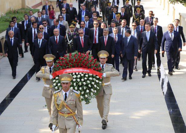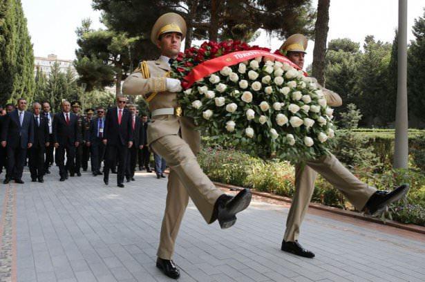Azerbaycan’a resmi ziyaret gerçekleştiren Cumhurbaşkanı Recep Tayyip Erdoğan, Azerbaycan’daki Türk şehitliğini ziyaret etti. Erdoğan, şehitliğe çiçek bıraktı.