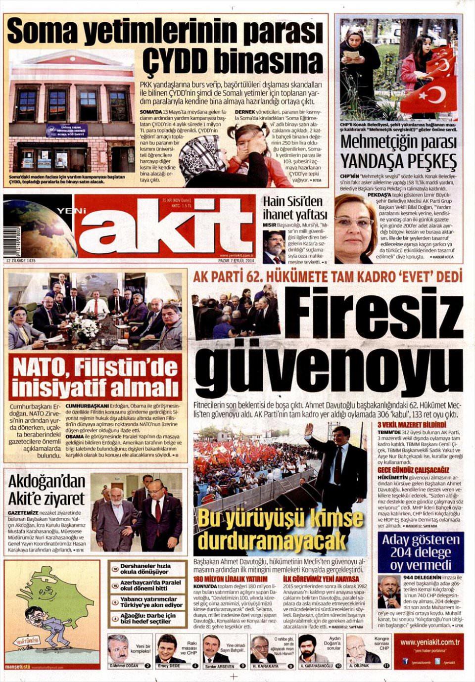 7 Eylül 2014 gazete manşetleri