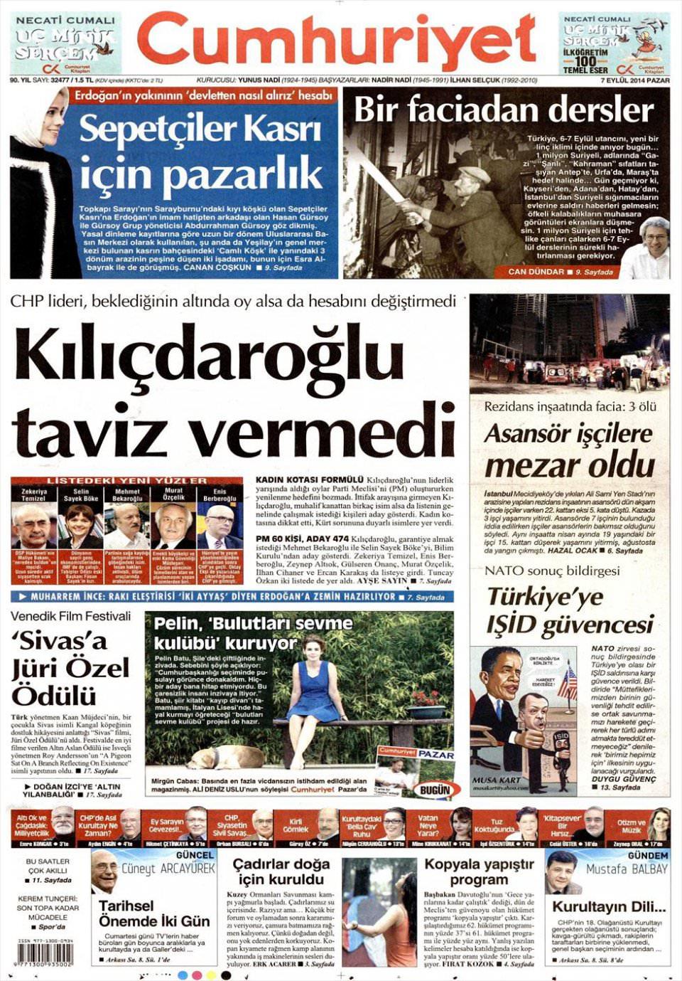 7 Eylül 2014 gazete manşetleri