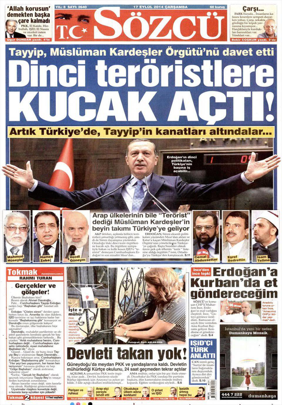 17 Eylül 2014 gazete manşetleri