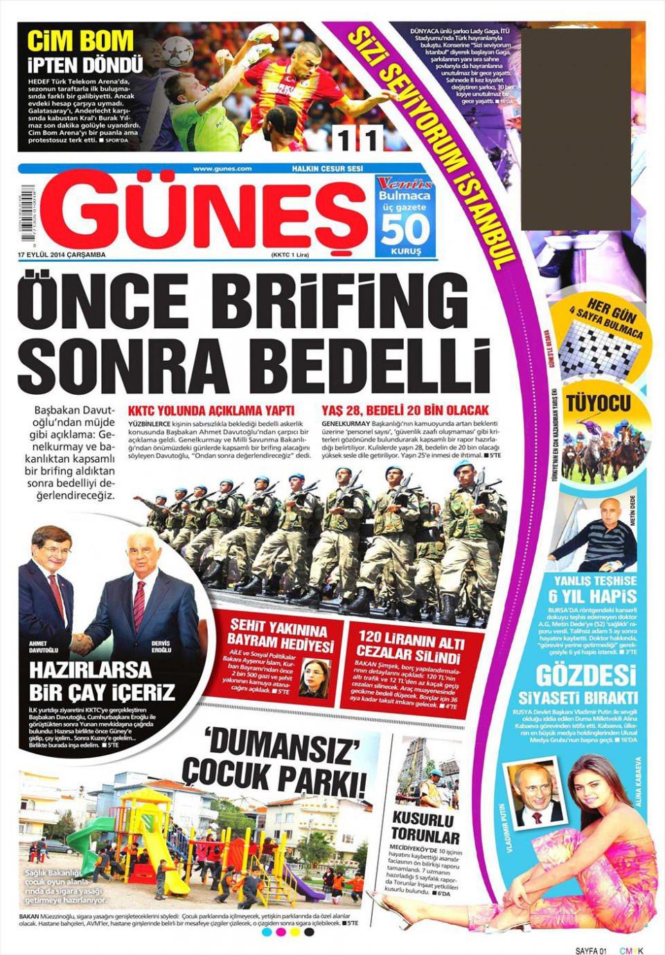 17 Eylül 2014 gazete manşetleri
