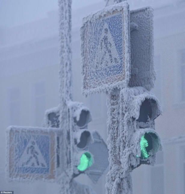 Trafik ışıkları aşırı soğuklar yüzünden buz üstüne buz tutuyor.