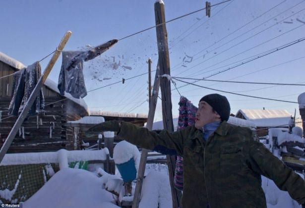 Yerli halk, yıkadıkları çamaşırları astıklarında kıyafetlerin donma problemiyle karşı karşıya kalıyor.
