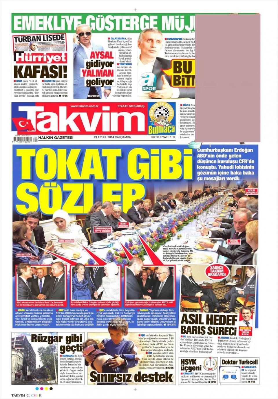 24 Eylül 2014 gazete manşetleri