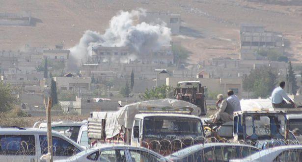 IŞİD ile bazı Kürt gruplar arasındaki çatışmaların yoğunlaştığı Kobani'de, yakıt varillerinin bulunduğu bölgeden dumanlar yükseldi.