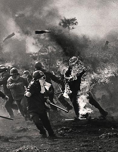 Ödüllü fotoğraf, Tokyo'da Narita havaalanının inşaasına karşı yapılan protestolar sırasında çekildi.