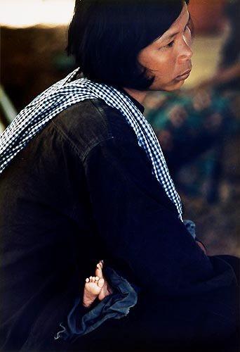 Tayland'daki mülteci kampında yemek dağıtılmasını bekleyen Kamboçyalı anne, bebeğini korumaya çalışıyor