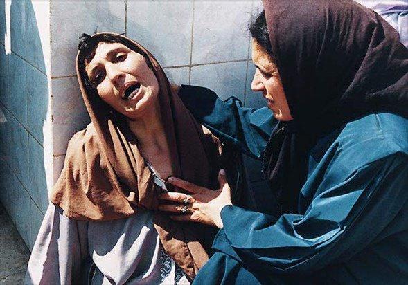 Cezayir'de bir kadın ölü ve yaralıların getirildiği hastane kapısında ağlarken..