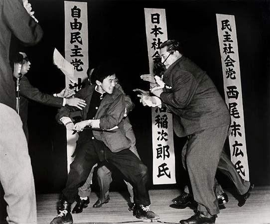 12 Ocak 1960. Sağcı öğrenci, Japon Sosyalist Parti lideri Asanuma'yı öldürmeden saliseler önce..