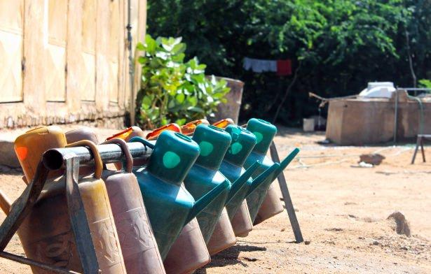 Onun yerine bir askıya asılmış ibrikler kullanılıyor. Hemen arkasında ise tuvaletler bulunuyor.