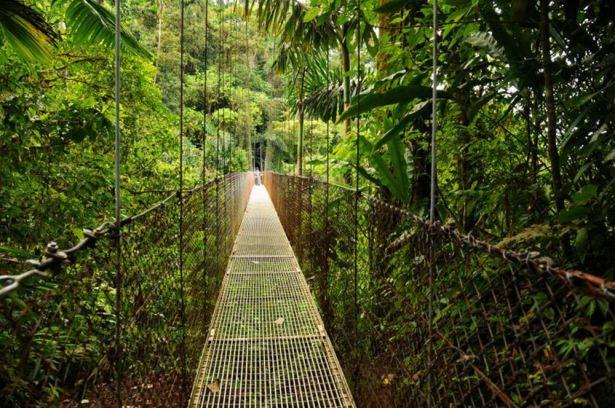 Arenal'da balta girmemiş ağaçların arasından geçen asma köprüde yürüyün (Kosta Rika)