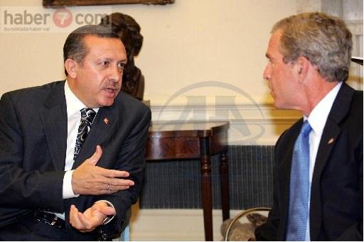 Basbakan Recep Tayyip Erdoğan’ın, ABD Başkanı George Bush (sağda) ile görüştü. Erdoğan’ın, beyaz saray oval Ofis’te bush ile görüşmesi yaklaşık bir saat sürdü. (20050608)