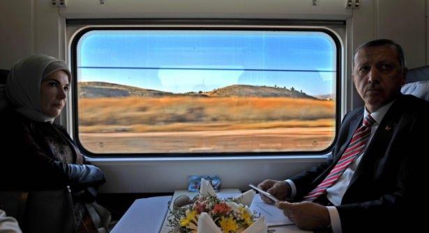 Başbakan Erdoğan ve eşi Emine Erdoğan Ankara-Konya arasında ilk seferini gerçekleştiren Yüksek Hızlı Tren (YHT) ile Konya'ya geldi. Yolculuk 1 saat 15 dakika sürdü. (23/08/2011)
