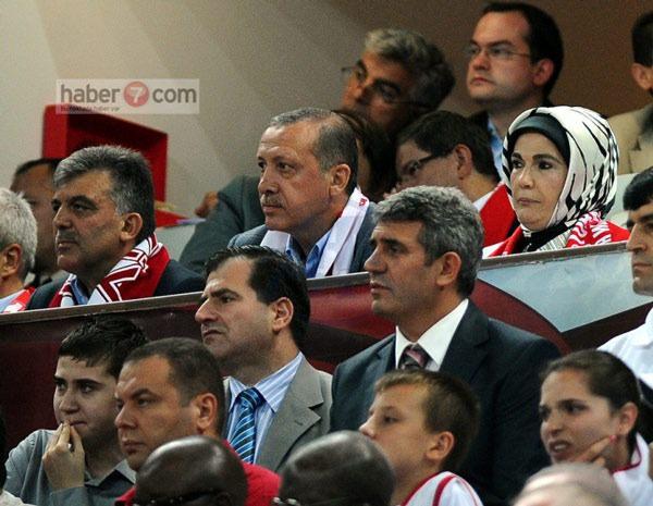 2010 DUNYA BASKETBOL SAMPIYONASI FINAL MACINDA TURKIYE ILE AMERIKA BIRLESIK DEVLETLERI KARSILASTI. KARSILASMAYI CUMHURBASKANI ABDULLAH GUL, BASBAKAN RECEP TAYYIP ERDOGAN VE ESI EMINE ERDOGAN DA IZLEDI.(12/09/2010)