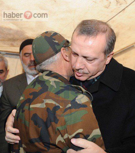 BASBAKAN RECEP TAYYIP ERDOGAN, DEPREMDEN ETKILENEN OKCULAR KOYU'NDE INCELEMELERDE BULUNDU. BASBAKAN ERDOGAN'IN CADIRLARI ZIYARETINE 8. KOLORDU KOMUTANI KORGENERAL MUSTAFA KORKUT OZARSLAN ESLIK ETTI. CADIRLARDAKI KADINLARIN TESEKKUR EDEREK, ''DEPREMIN ILK ANINDAN ITIBAREN YARDIMIMIZA KOSTULAR, DESTEK OLDULAR'' DEMELERI UZERINE ERDOGAN, ''YAPTIGINIZ YARDIM VE KURTARMA HIZMETLERINDEN DOLAYI SIZE TESEKKUR EDIYORUM'' DEDI VE 8. KOLORDU KOMUTANI KORGENERAL MUSTAFA KORKUT OZARSLAN'I SARILARAK OPTU. (03/11/2010)