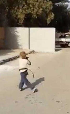 5 yaşındaki çocuk, Rakka sokaklarında aldığı silah eğitimi bir oyun olarak algılasa da, gerçek bir çocuk savaşçı gibi davranıyor.