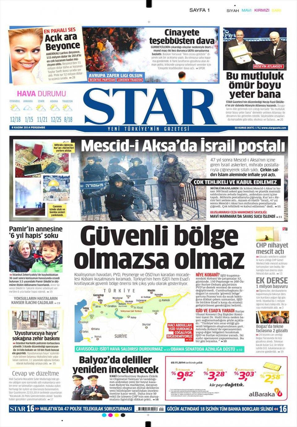 6 Kasım 2014 gazete manşetleri