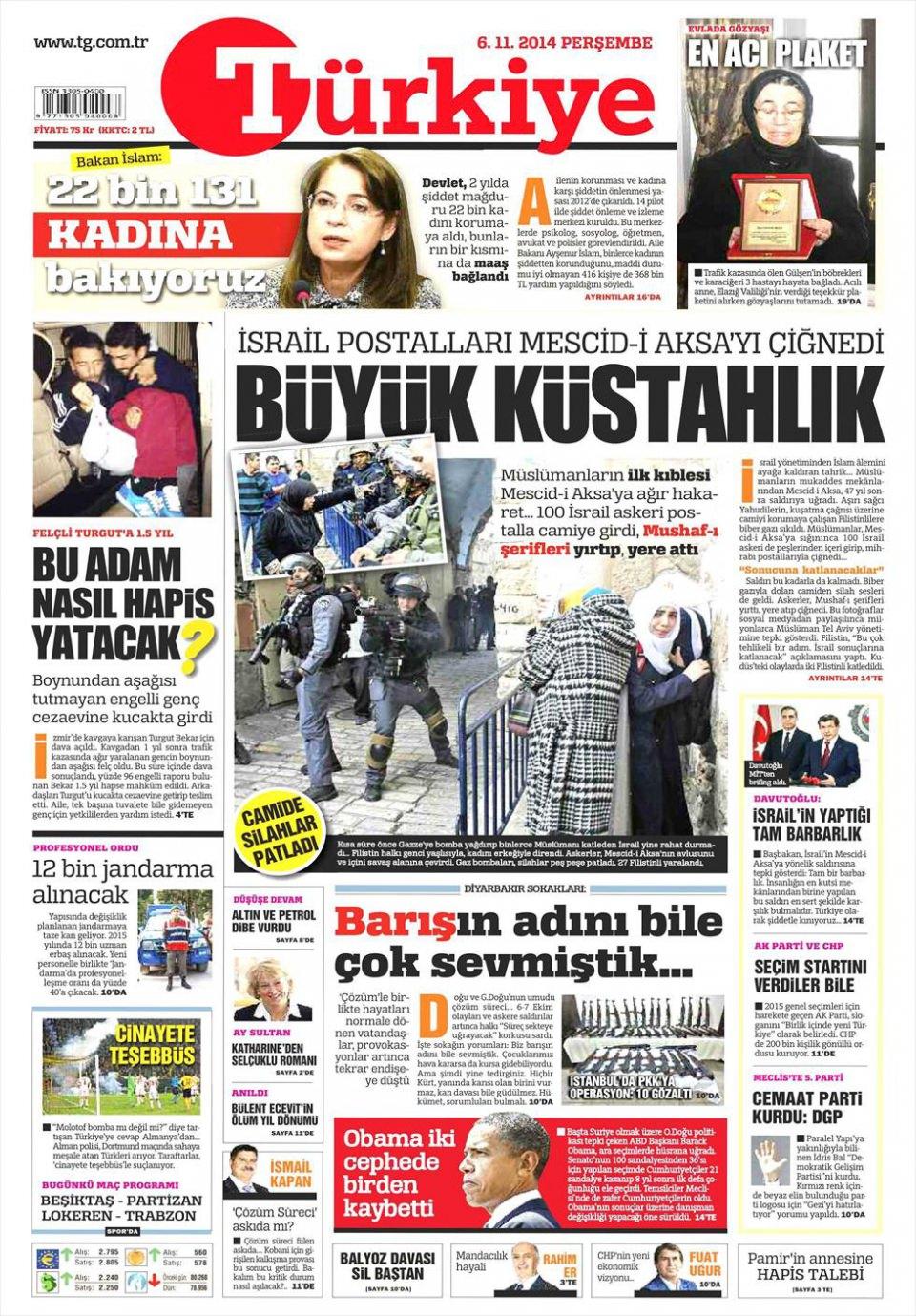 6 Kasım 2014 gazete manşetleri