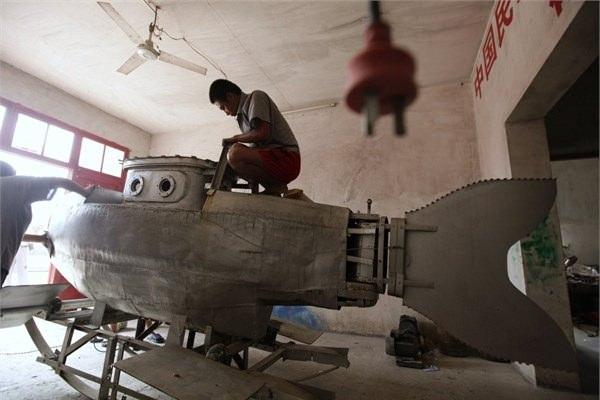 Çinli teknisyenler balık görünümlü bir denizaltı üretmek için çalışıyor.