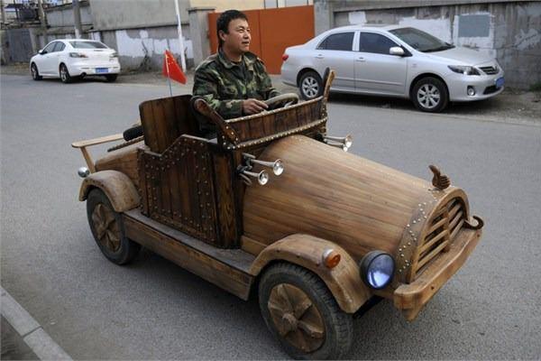Çin Liu Fulong, elektrikle çalışan bu ahşap modeli üretti. Araç saatte 40 km'ye kadar çıkabiliyor.