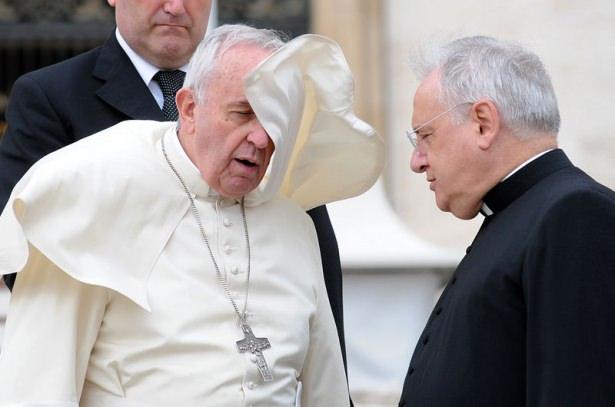 Papa rüzgarın azizliğine uğradı
