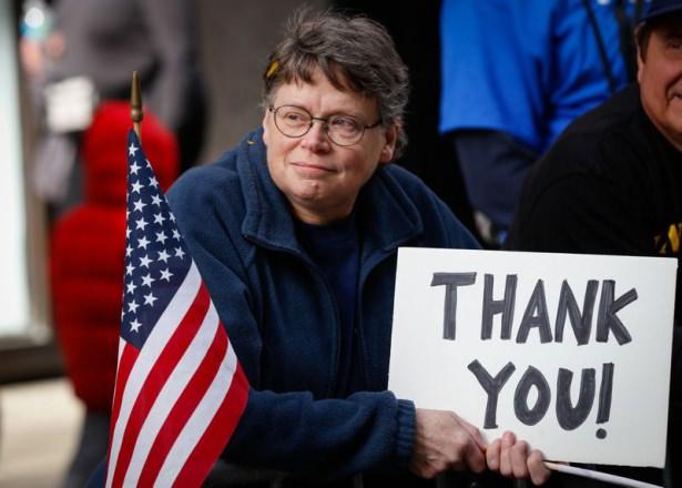 Yürüyüş sırasında bazı izleyicilerin de ABD bayrakları ile gazilere teşekkür eden pankartlar taşıdıkları gözlendi.