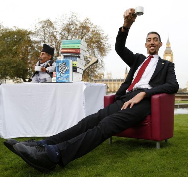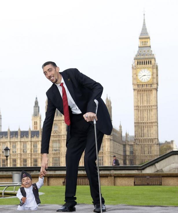 Guinness Rekorlar Kitabı'nın 60. yıl dönümü kutlamalarına katılmak için İngiltere'nin başkenti Londra'da bulunan 2 metre 51 santimetrelik boyuyla "Dünyanın en uzun boylu adamı" ünvanına sahip Sultan Kösen, 54.6 santimetrelik boyuyla "Dünyanın en kısa adamı" ünvanına sahip Chandra Bahadur Dangi ile buluştu.