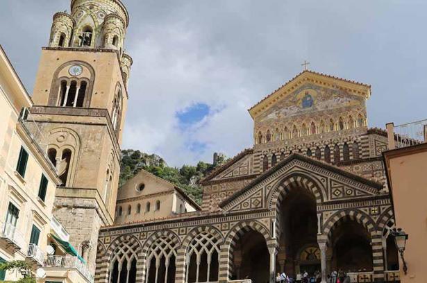 Sahile ismini veren Amalfi'ye gidiyoruz. Sahile bitişik başlayan çarşısı şeridin en şirin ve gezilmesi en eğlenceli merkezlerinden. Küçük meydana bir parça büyük gelen Piazza Duomo Katedrali, kendisinden çok bir Hint tapınağına ulaştıracakmış hissi veren merdivenleriyle dikkat çekiyor.