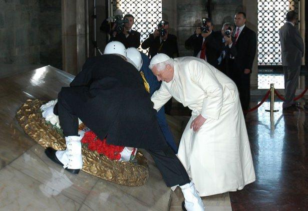 Papa 16. Benediktus Türkiye ziyaretinde Anıtkabir'i ziyaret ederek, mozoleye çelenk koydu.
