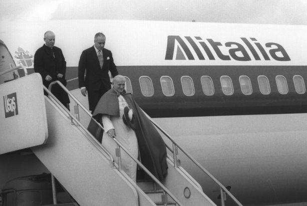 Resmi bir ziyaret için Türkiye'ye gelen Papa 2. Jean Paul (pelerinli) ülkemizi ziyaret eden 2'inci papa oldu. Büyükelçi Kamuran Gürün (ortada)