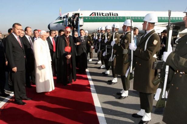 Papa 16. Benediktus Ankara Esenboğa Havaalanı'nda dönemin başbakanı Recep Tayyip Erdoğan tarafından karşılandı.