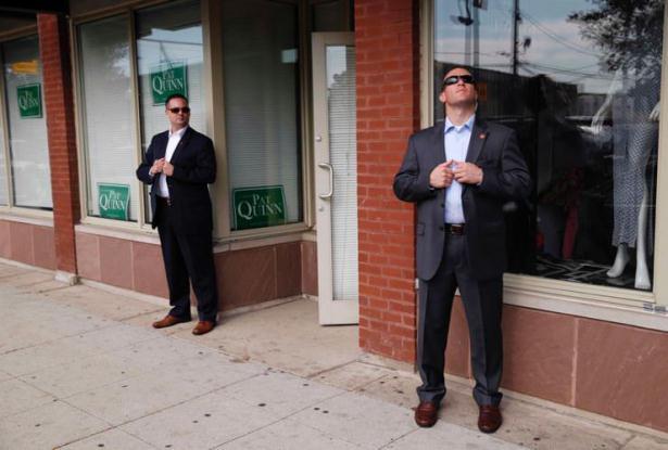 Gizli Servis ajanları Chicago gezisi sırasında Barack Obama'yı koruyor. (Kevin Lamarque)