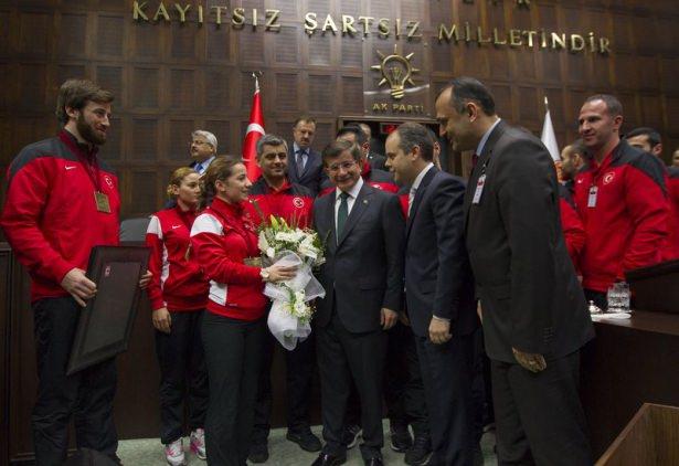 Milli Tkım oyuncuları Başbakan Davutoğlu'na üzerinde ismi yazılı karate kıyafeti hediye ettiler. İşte o anlardan renkli kareler...