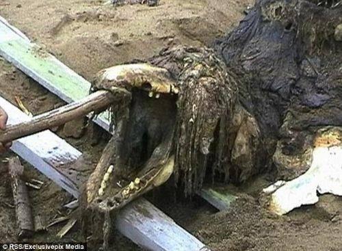 Rusya'da bir sahilde bulunun bir iskelet herkesi korkuttu. Uzun gövdesi, keskin dişleri ve kürkü ile bir canavarı andıran bu yaratığın ne olduğuna dair araştırmalar yapıldı. Sahilde askerler tarafından bulunan iskelerin tam yedi metre olduğu tespit edildi. Yapılan testler sonucunda bu iskeletin bir balık veya timsaha ait olmadığı ortaya çıktı