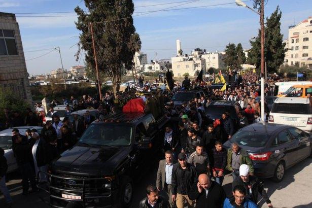 Ebu Ayn’ın naaşını hastaneden alan konvoy, on binlerce Filistinli ve asker eşliğinde, Ramallah Meydanı'ndan geçerek Mukata'nın bahçesine geldi.