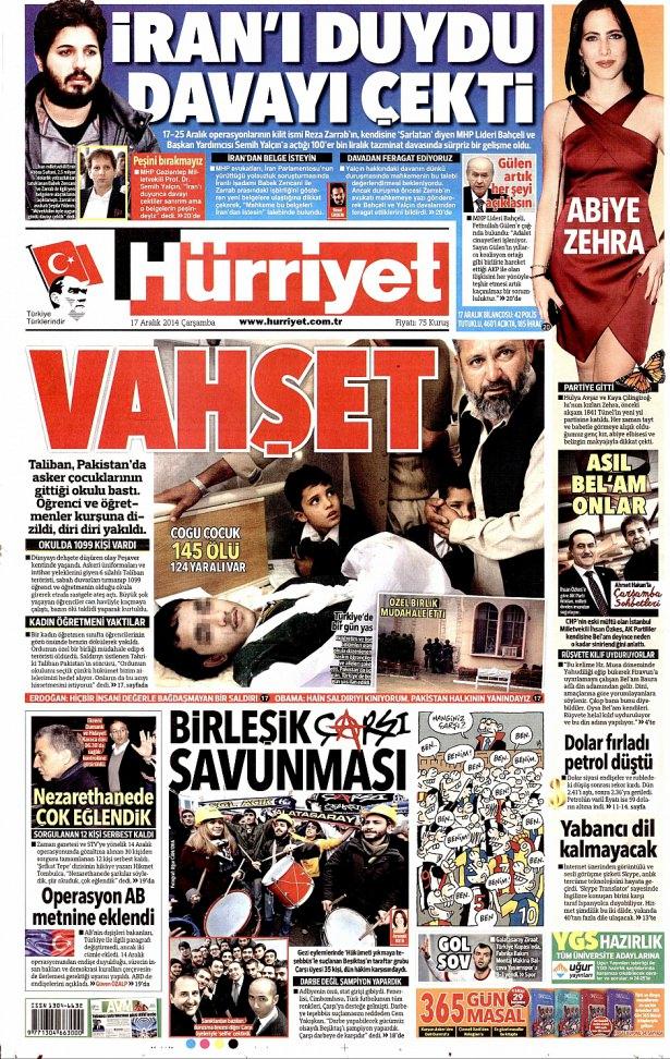 17 Aralık 2014 gazete manşetleri