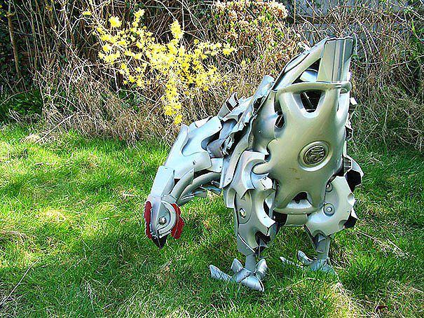 Araba parçalarıyla harika eserler yaptı