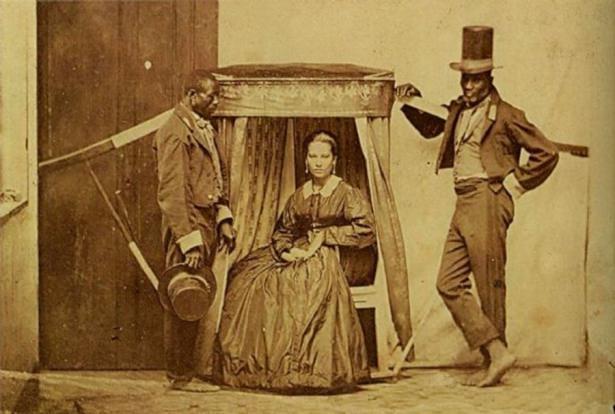 Köleleri tarafından taşınan bir kadın, Brezilya, 1860