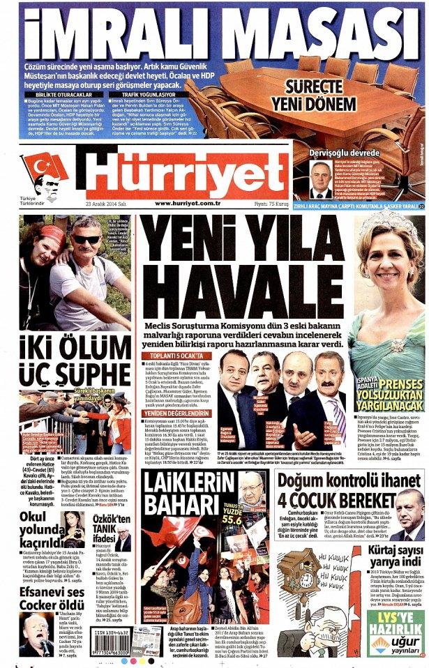 23 Aralık 2014 gazete manşetleri