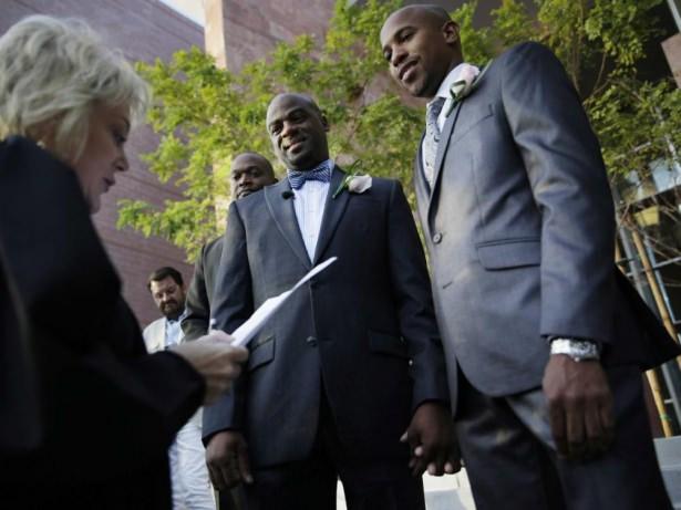 Gay evlilikleri ABD’de 18 eyalette yasal hale geldi. Bunun ardından evlenen ilk çift Nevada’da Kelvin Atkinson (solda) ve Sherwood Howard oldu.