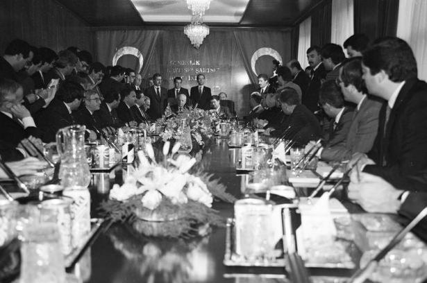 7. Cumhurbaşkanı Kenan Evren 30 Kasım 1989'da son kez başkanlık ettiği Bakanlar Kurulu toplantısında görülüyor.