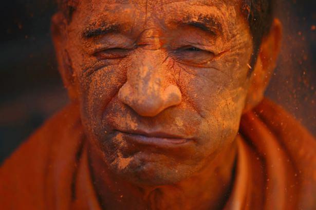 Yüzü parlak kırmızı bir tozla pudralanan bir dindar, Katmandu'da düzenlenen Sindoor Jatra festivaline katılmaya hazırlanıyor. Festivalde, Nepal Yeni Yılını ve baharın gelişini kutlamak için şarkılar söylenip, danslar ediliyor, aynı zamanda geleneksel müzik enstrümanları çalınıyor ve insanlar birbirlerine bu parlak kırmızı tozdan fırlatarak eğleniyorlar.